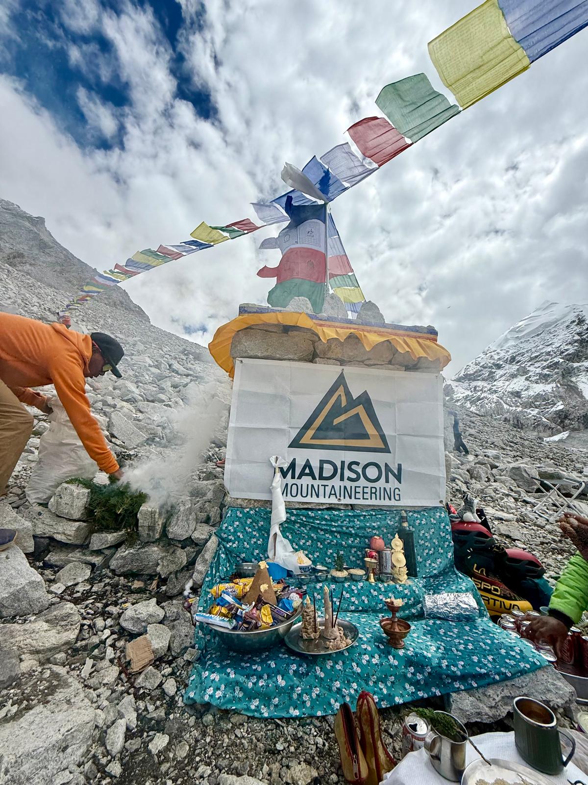 The Madison Mountaineering Cho Oyu expedition team is back in their base camp after a successful rotation up the mountain to Camp 1 and beyond. Climbing to nearly 22,000 feet, the team had excellent weather, great views, and good times on the world’s sixth-highest peak! The team is in good health and high spirits, glad to be back at base camp enjoying some well-earned rest before the next phase of the expedition. Expedition leader, Garrett Madison check in with this dispatch from Cho Oyu: