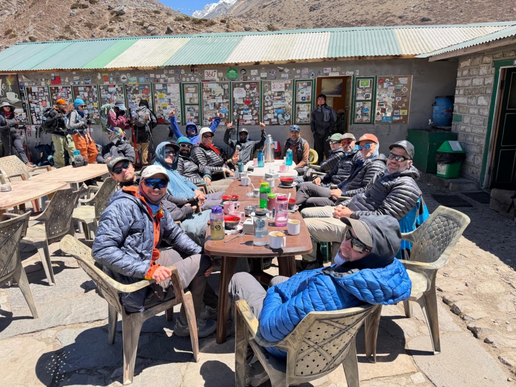 The team is doing great! Beautiful sunny day today. Awesome views of all of the surrounding peaks! And we’re looking forward to arriving in our Everest Base Camp (5364m/17,598ft) tomorrow.