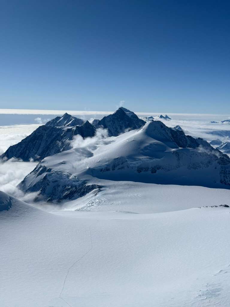 Yesterday, we summited Mount Vinson! Everyone made it to the top. It was a beautiful day and we got some great views from up there! So, just a spectacular summit day. Couldn’t ask for better weather: calm, with some low clouds below on the mountain and great views above.
