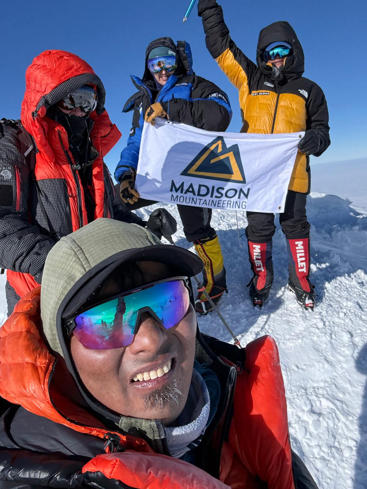 It comes with great excitement to share that the entire Madison Mountaineering Mount Vinson expedition team topped out on Antarctica’s highest peak yesterday and has safely returned to their high camp! The team enjoyed a beautiful day on the mountain, taking in great views and sunshine as they pushed to the summit. Once standing on top, we celebrated together while relishing in the beautiful moment and place before shouldering packs once again and starting down the mountain. The team had a good nights rest and plans to continue on down to Vinson Base Camp today. Way to go, team! Expedition leader, Garrett Madison checks in with the celebratory dispatch from Mount Vinson: