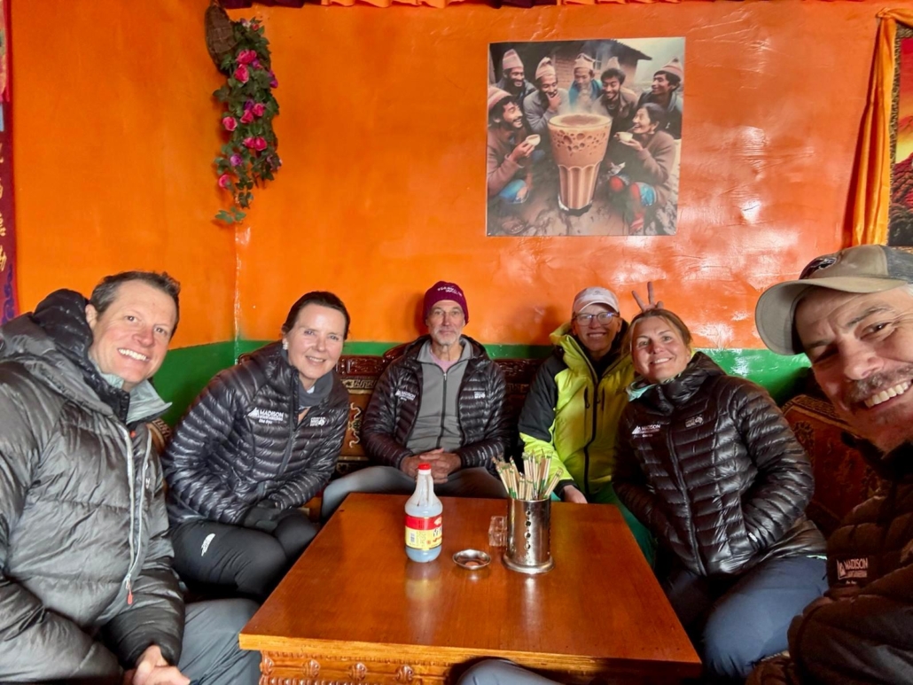 We are down in Tingri at about 14,500 feet. We dropped down a couple of days ago from advanced base camp to wait out the big snowstorm that hit the Himalayas the last couple of days. Sounds like our advanced base camp got about four feet of snow. So we’re very thankful that our Sherpa team was up and taking care of our tents to make sure they didn’t collapse under the big snowfall.